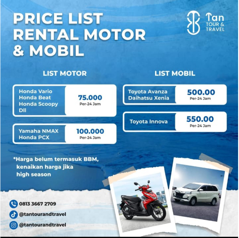 Nikmati kebebasan menjelajah Karimunjawa dengan pilihan motor atau mobil. Lebih fleksibel, praktis, dan sesuai gaya liburanmu.